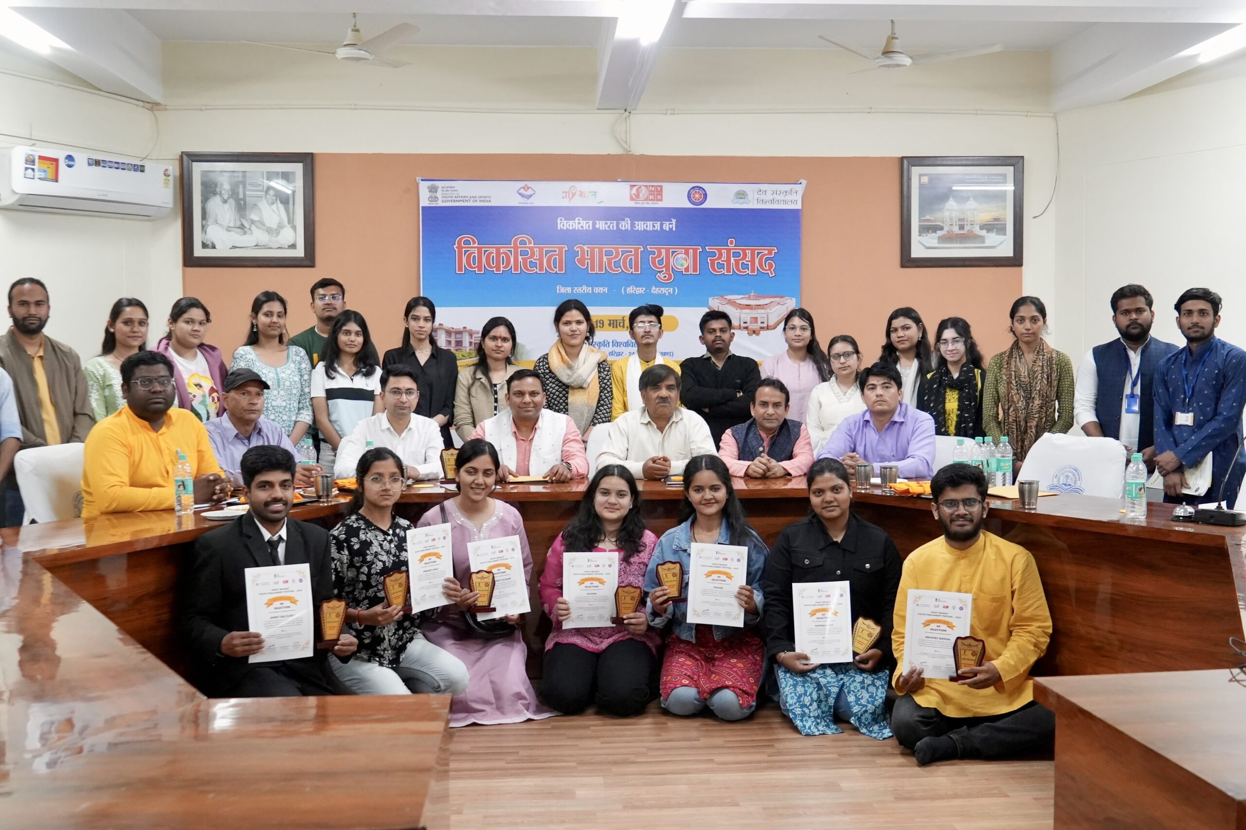 विकसित भारत युवा संसद कार्यक्रम मे उत्तराखंड राज्य मे दो जिले हरिद्वार और देहरादून के नोडल इंस्टिट्यूट के रुप में देव संस्कृति विश्वविद्यालय हरिद्वार को इन दोनों जिलों का नोडल इंस्टिट्यूट बनाया गया है, जिसमे विकसित भारत युवा संसद का जिला स्तरीय कार्यक्रम आयोजित किया गया। 100 युवाओं के रजिस्ट्रेशन में से हरिद्वार-देहरादून जिला स्तरीय युवा संसद चयन प्रक्रिया में 10 युवाओं का चयन सफलतापूर्वक किया गया, युवाओं ने प्रतिभाग कर अपनी प्रतिभा का प्रदर्शन किया। ज्यूरी मेंबर्स शैलेश भट्ट ड़ी.वाई.ओ, वाई. के. हरिद्वार, डॉ.उमाकांत इंदौलिया, उपकुलसचिव, देव संस्कृति विश्वविद्यालय, डॉ. योगेश धस्माना, रिटायर्ड जिला यूथ ऑफिसर, नेहरू युवा केन्द्र संगठन, योगम्बर पोली, एंकर ओर आर जे,आकाशवाणी, देहरादून, एन. एस. नेगी, समाजसेवी व मोटिवेशनल स्पीकर द्वारा उनको जज किया गया।