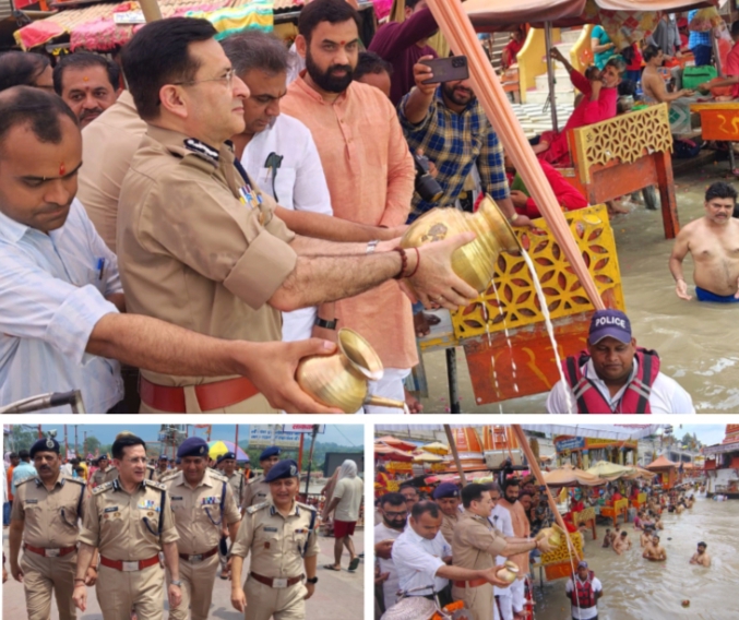 मेले की तैयारियों को परखने हरिद्वार पहुंचे डीजीपी उत्तराखंड दीपम सेठ द्वारा हर की पैड़ी पर मां गंगा जी का पूजन कर सकुशल मेला सम्पन्न कराए जाने हेतू मां गंगा का आशीर्वाद लिया। इस दौरान उनके साथ पुलिस महानिरीक्षक अपराध एवं कानून व्यवस्था नीलेश आनंद भरणे, सहित अन्य अधिकारी गण भी मौजूद रहे।