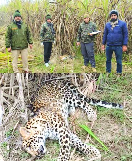 गन्ने के खेत में मृत मिला गुलदार, वन विभाग में मचा हड़कंप।